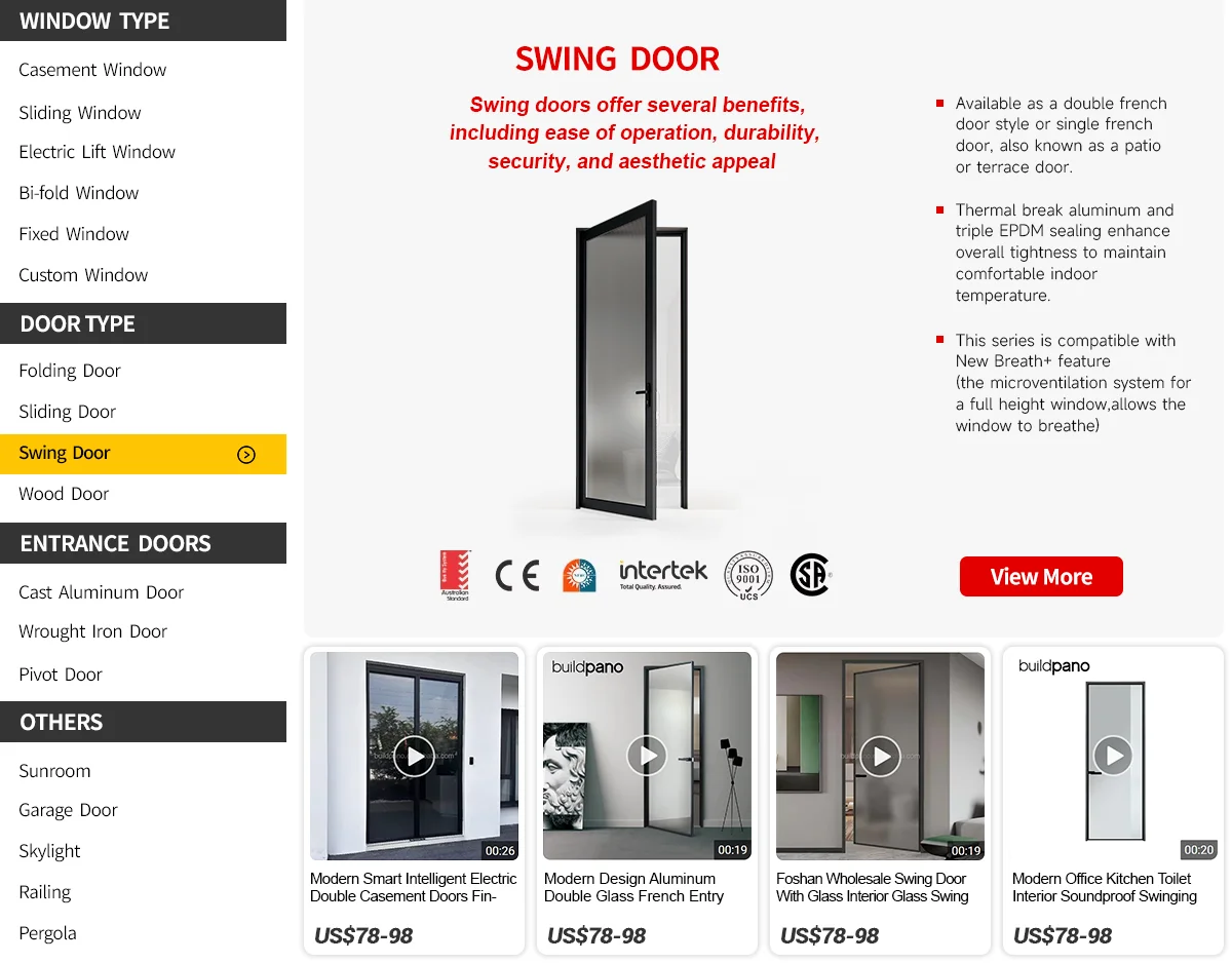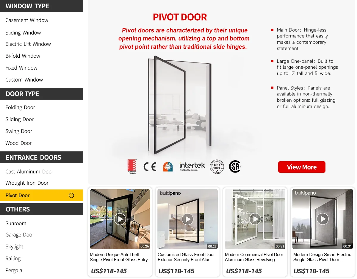 Основные продукты:Алюминиевые окна и двери, универсальное решение для строительных материалов, услуги премиального ремонта, входные и внутренние двери, электрические окна и двери